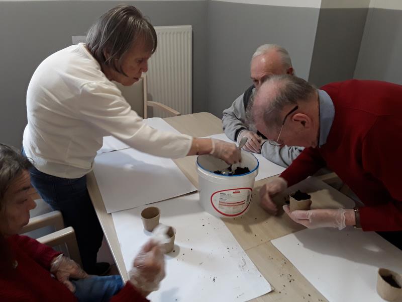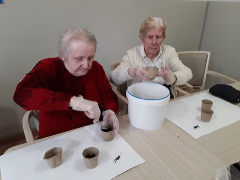 A l'approche du printemps, et pour l'occasion de la semaine du jardinage, nous sommes dans la période pour faire des semences. C'est avec délicatesse et précision (et aussi un peu de terre sur les doigts) que les résidents ont semé des graines d’œillets ainsi que des graines de lupin.