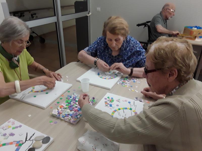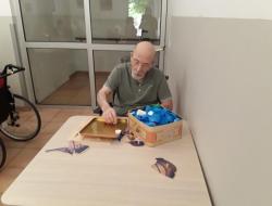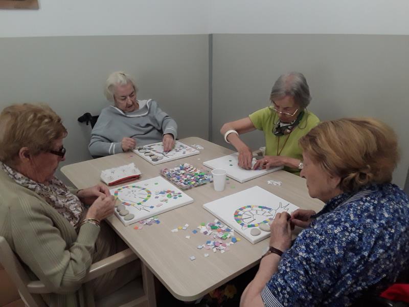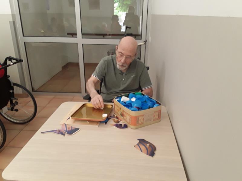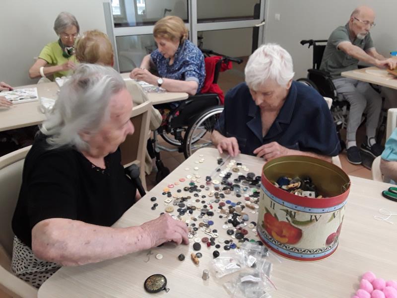 Ce sont des ateliers prisés par les résidents. Nous avons organisé trois groupes afin que tout le monde puisse y participer. Les résidents confectionnent pas mal de choses : des tableaux, des décorations pour la salle de restaurant ou les tables ou bien pour leur chambre.