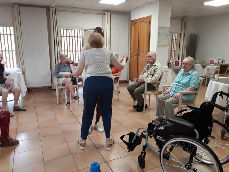 Comme chaque mercredi après-midi, un intervenant de Siel bleu vient faire de la gym douce avec les résidents. Ce mercredi, c'est Alexandre qui est venu et il en a profité pour faire danser les résidents !