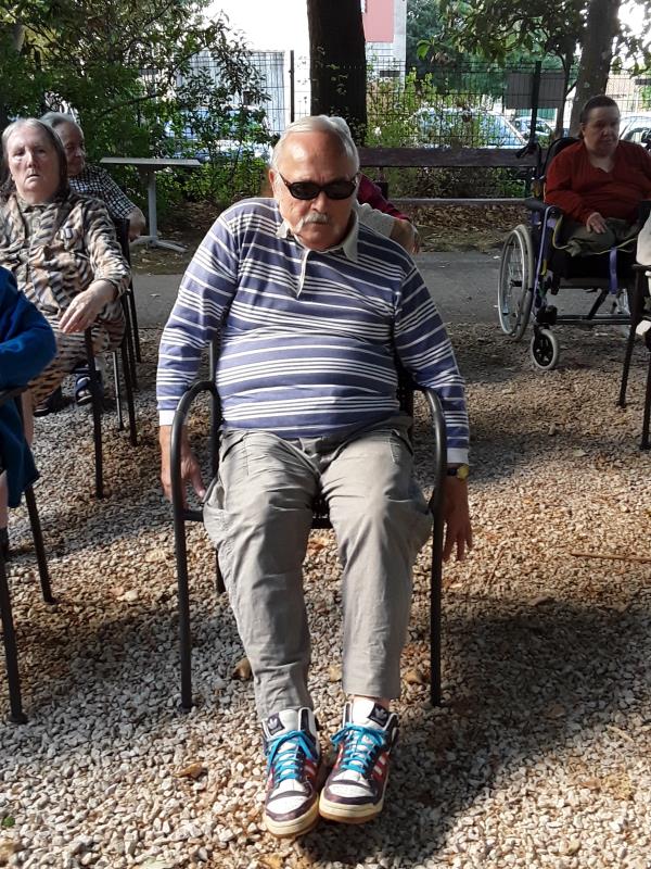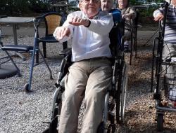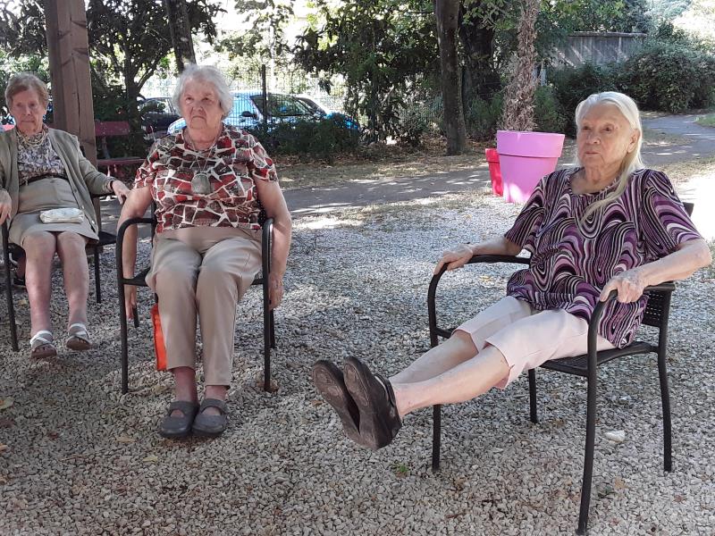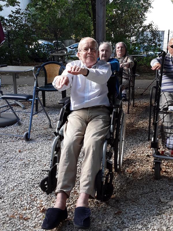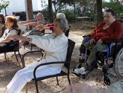 Aujourd'hui, nous faisons la gym douce dans le parc de la résidence La Quintessence à Saint Mathieu de Tréviers. Il fait bon et nous en profitons.