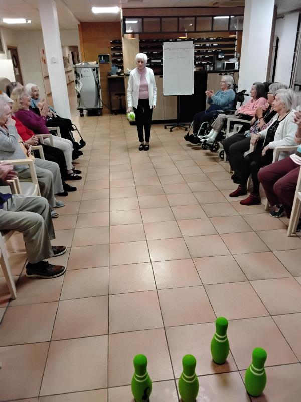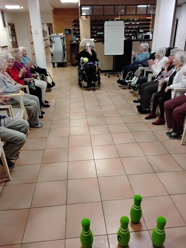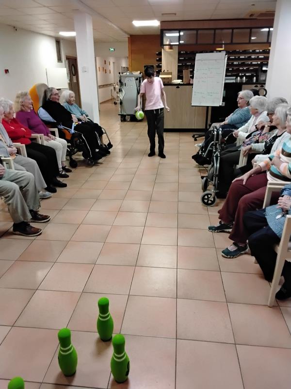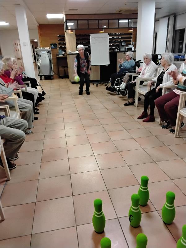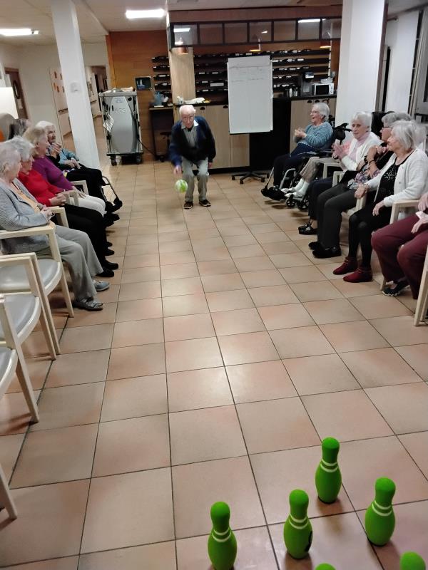 La Quintessence > Actualités > jeudi 6 novembre jeudi 6 novembre Publiée le 08/11/2025 Bowling en salle , un bon moment passé avec les résidents.