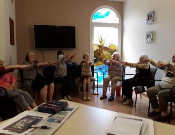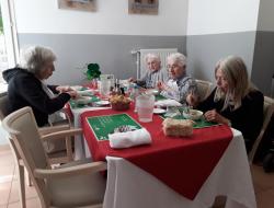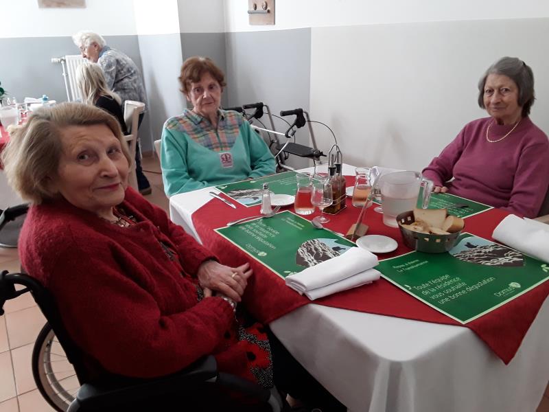 A l'automne, il s'avère que les moutons rentrent pour pouvoir se nourrir, alors il faut déplacer le troupeau. Le berger et ses chiens vont devoir faire ce qui s'appelle la Transhumance. Aujourd'hui, après plusieurs ateliers de préparation, nous avons organisé la journée sur le thème de la Transhumance. Au programme: un repas dont le menu a été choisi par les résidents, puis dans l'après-midi, nous projetterons un film sur la Transhumance, suivi d une conférence animée par Nathalie (animatrice ) et Marlène. Mme L. Maryse ainsi que les animatrices ont joué le jeux pour ressembler à des bergers.