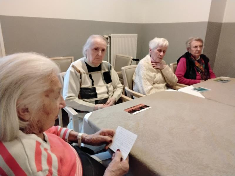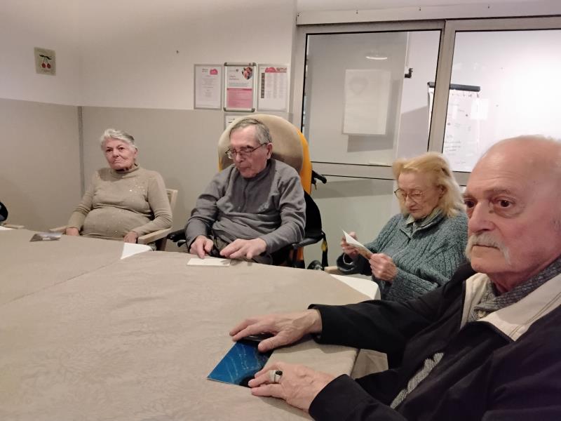 L'association Pâtures, lors de sa bourse aux livres , a demandé aux visiteurs d'envoyer des cartes postales aux résidents pour notamment leur souhaiter de bonnes fêtes, nous avons pris le temps de lire ces cartes postales,avec des messages très touchant de personnes inconnues mais qui garde une gratitude pour nos anciens je remercie du fond du cœur cette association, qui a fait voyager les résidents.