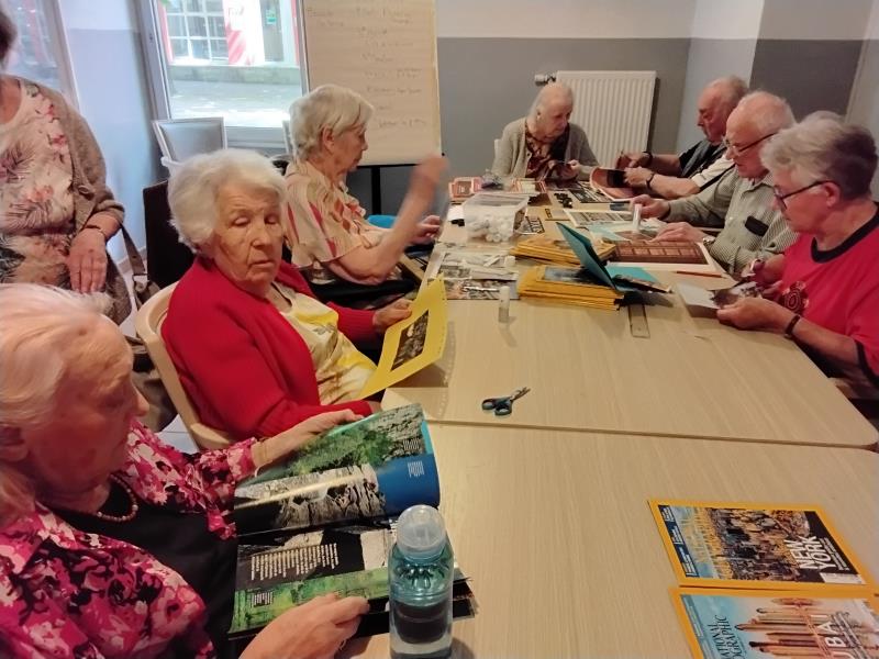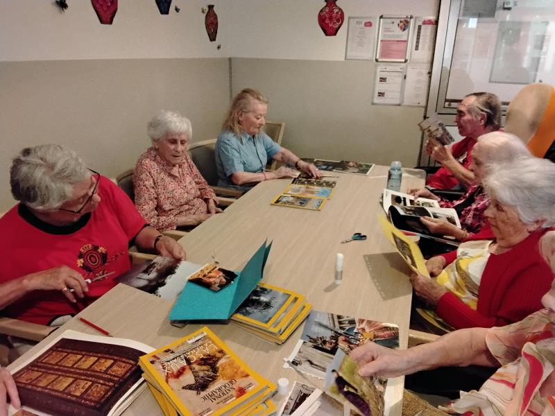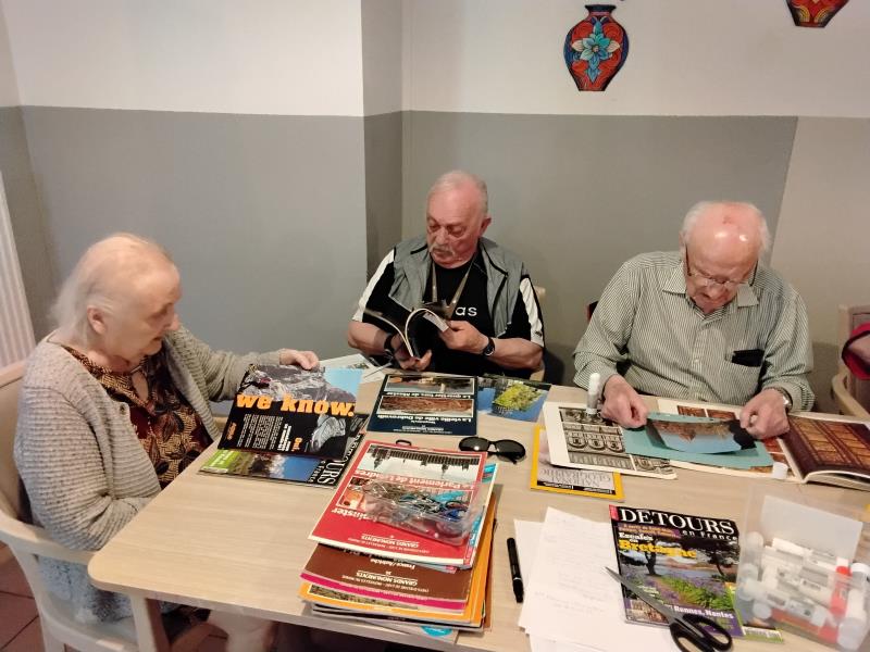 Atelier créatif, en raison du partenariat avec le collège Savary à St Mathieu de TREVIERS, les résidents ainsi que les collégiens doivent réaliser une carte postale en trois D,avec un souvenir qui leur a été très marquant donc voici pour le moment les réalisations des résidents !