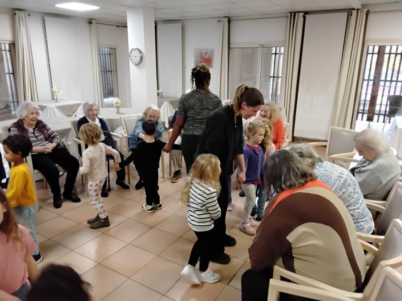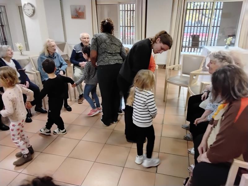 La Quintessence > Actualités > mercredi 12 novembre mercredi 12 novembre Publiée le 12/11/2025 rencontre avec les loulous du Pic, chant, lecture de contes, un moment toujours très apprécié par les résidents 😃