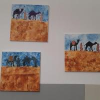 Publiée le 01/10/2021Aujourd'hui, petite traversé de la mer méditerranée, direction le désert du Sahara ! Avec des pochoirs les résidents ont tracé les dromadaires, puis avec des nuances de peintures ils ont réussi à faire un jolie sable orangé ainsi qu'un beau ciel bleu ! Les résidents sont [...] Lire la suite