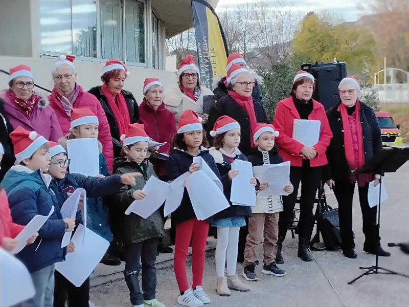 illuminations sur le parvis de la mairie, chorale avec les enfants du Mazet, et le clubs des aînés. Je voulais remercier toutes les familles qui sont venues m'accompagner pour cette sortie. MERCI😃