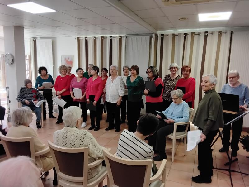 La Quintessence > Actualités > vendredi 5 décembre vendredi 5 décembre Publiée le 05/12/2025 les tam1loups sont venus chanter des chants de Noël, pour les résidents, Mme Gatounes Annie a dansé avec le chef de cœur Salandza.....